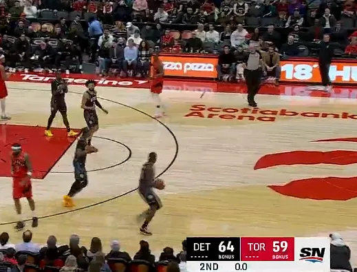 虎扑03月16日讯 NBA常规赛,活塞客场对阵猛龙的比赛正在进行中,目前上半场比赛结束活塞以64-59领先猛龙。